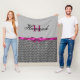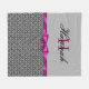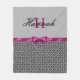 Black Chandelier Damask and Pink Bow Monogram Fleece Blanket