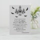 A black crystal chandelier and eerie bats circling accent this wedding invitation. It is shown on the basic paper; however, I recommend the weight and texture of the linen paper. This line coordinates perfectly with the envelopes from the Chandelier and Bats Collection.