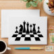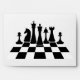 Black chess pieces on a chessboard envelope