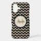This is an especially pretty case for her, with black chevrons contrasted with silver gold faux glitter chevrons. At the centre is her monogram in gold on a lighter circle banner lined in black. Add her name imposed in black over the monogram, and you have a unique, elegant, and attractive case that is trendy and a bit girly. *Please note - the image is printed on the case, which contains no actual glitter or metallic substance.*