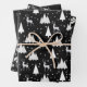 **Black Christmas Wrapping Paper Flat Sheet Set of 3** assortment of three simple minimalist black and white festive holiday patterns on flat sheets of Christmas gift wrap.