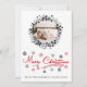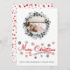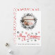 Red Merry Christmas script typography and black wreath photo Holiday Card. This festive design displays a Christmas wrearth as a frame for your photo and the text "Merry Christmas" in modern script typography in red. The back includes red polka dots- snowflakes on white.