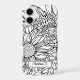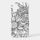 This phone case features an oversized line art drawing of chrysanthemums in black with a personalized name. Original art from Dogwood & Thistle.