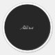 Black circle background with white circle frame ready to personalise. Insert your own personal text.