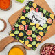 A personalised family name recipe book with citrus fruit pattern featuring colourful oranges, lemons, tangerines and grapefruit.
