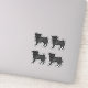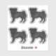 Destei's original cartoon illustration of an adorable black coat colour Pug breed dog. The dog is standing and looking towards the viewer. The tail is curled on the top of the dog's back. The dog's mouth is closed and the eye colour is brown. The dog design is placed four times on the design area.