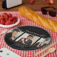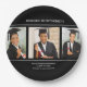 Modern black graduation custom paper plates for college/university graduates personalised with 3 favourite photos.