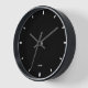 Black colour clock face with white hours numbers to match the black frame. Optional name. Simple minimalistic design.