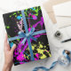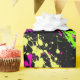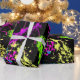 Hip, fresh and awesome paint splatter birthday or other all-occasion gift wrap in vibrant, bright neon colours of pink, green, blue, and yellow against a high-contrast black background. Great for a retro 80s eighties theme party, or a cute sweet sixteen birthday gift for the artist teen girl or guy. Abstract expressionism artwork in a super bright colour scheme.