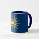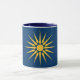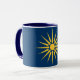 This stylish two-tone mug showcases the iconic Vergina Sun—an ancient Hellenic symbol deeply tied to the legacy of Alexander the Great and the enduring heritage of Greek Macedonia. The vivid golden emblem stands out brilliantly against the sleek black handle and interior, creating a striking contrast that blends modern design with timeless symbolism.