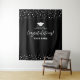 This black & white tapestry will be a stylish photo backdrop for your graduation party. This modern design features sylish script " Congratulations! " and a graduation cap with a confetti background. You can personalise the text. More graduation party stationery and decorations are available at my shop BaraBomDesign.