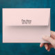 Beautifully feminine and stylish, this chic contemporary envelope design has a pale pink solid outer colour with a little surprise of black confetti dots over a white background on the inside. For your convenience, a return address template is set up for you to personalise with your name and address on the back flap of the envelope. If you prefer to leave the back flap blank, you can choose personalise and delete the sample address in the template.