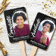 Stay cool while supporting your favourite grad as they receive their diploma, with this keepsake 2 photo hand fan. On the front, bold, graphic, white handwritten “congrats” script calligraphy and sans serif typography along with a photo of your choice in an arch overlay a dramatic black background. On the back, white handwritten “graduate” script calligraphy and sans serif typography, along with an additional custom photo, overlay black. Personalise the custom text with your grad’s name, school and class year. Matching invites, thank you cards, address labels, stickers and other graduation goodies are also available in this trendy and stylish collection. Guaranteed to preserve cherished memories of their special occasion!