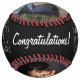 Black Congratulations Grad Graduation Cap 2 Photo Softball. White typography, graduate cap and 2 photos. Add 2 photos, graduate name, school name and year. You can change any text on the softball. This custom and personalised softball is a perfect gift for a graduate.