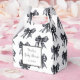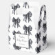 Pretty baby shower party favour box featuring a black coquette bow ribbon. The words can be changed to suit your own details or requirements