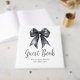 Pretty baby shower guest book featuring a black coquette bow ribbon. The words can be changed to suit your own details or requirements