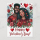 This postcard features a happy black couple surrounded by red hearts and framed by red roses.