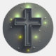 Elegant black Christian cross sticker illuminated with soft green light, perfect for decorating laptops, water bottles, notebooks, or other personal items. Durable, vibrant, and inspirational, it makes a thoughtful gift for church events, baptisms, confirmations, or anyone who loves faith-inspired designs. Showcase your Christian beliefs with style using this beautiful sticker.