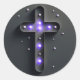 Elegant black Christian cross sticker illuminated with soft purple light, perfect for decorating laptops, water bottles, notebooks, or other personal items. Durable, vibrant, and inspirational, it makes a thoughtful gift for church events, baptisms, confirmations, or anyone who loves faith-inspired designs. Express your Christian beliefs with style using this beautiful sticker.
