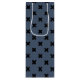Black cross stitches on blue-grey wine gift bag