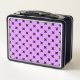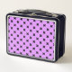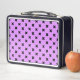 Black cross stitches on lilac metal lunch box
