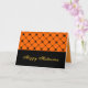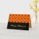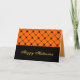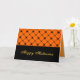A custom Halloween card with black crosses on dark orange with Happy Halloween in grungy script. Click Customise It to change background colour, add text and more.