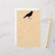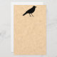 A black silhouette image of a crow bird, on a printed background that has a beige parchment pattern. The parchment look pattern is an image, a flat design, printed on the surface of the item.