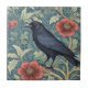 "classy classic art nouveau", "black carrion crow Bird", "sage green woodland animals", "william morris ceramic tile", "leafy dark navy blue raven", "stylish red forest tree leaves", "left facing vintage birds", "wildlife garden animal on branch", "nature floral flower botanical", "leaf flowers traditional antique"