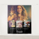 A tapestry for a 21st (or any age) birthday party. A black background. Personalise and add 4 high quality photos of the birthday girl. The text: The name in white with a modern hand lettered style script. Tempates for a name, age. Can be used as wall decor for the party or as a photo booth backdrop.