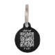 Customisable black QR code pet ID tag. This pet tag features a scannable QR code that enables anyone with a smartphone to access important information about your pet. You can easily generate a brand new QR code on the design via the "personalise this template " feature. Just add the URL of your contact webpage / social media page or you can even add your email address to the area provided.