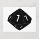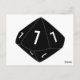 D10 Table Number Postcard--Table 7 Double-sided Geeky and offbeat D10 table number postcard featuring a D10 ten-sided dice in black. This quirky and fun table number card is double-sided so make sure to change the numbers on both sides. Easy to customise, change the numbers for the appropriate table number(s). Click "Customise It" to find more personalisation options.