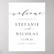 Welcome your wedding guests with this romantic wedding welcome sign. This customizable wedding welcome sign features a black dainty script with classic typography.