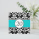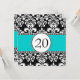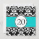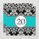 Black Damask 20th Birthday Invitations Aqua Blue