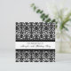 Custom 80th Birthday party invitations in elegant and chic black and white classic floral damask pattern. Add your name and party details for a unique and stylish 80th birthday party invitation.