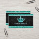 Black Damask Faux Teal Mint Glitter Royal Crown Business Card