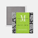 Black Damask Green Monogram Save The Date Magnet