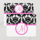Black Damask Heart Swirl Bright Pink Trim RSVP Card