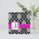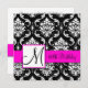 Black Damask Pink Monogram 60th Birthday Invite