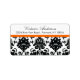 Our black damask return address stickers are the perfect finishing touch for your Bridal Shower Invitations, Wedding Invitations or Thank You Note Cards. This item features a beautiful band of black damask with an orange colour accent strip set on a white background. You can easily change the colour strip... just go to customise and then under edit pick the background colour. Feel free to contact us for help! Matching items available in our shop @ www.celebrateitweddings.com. This item is available in other colours in our shop.