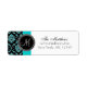 Cute design with black vintage damask pattern with PRINTED teal or aqua blue glitter effect and monogram initial. Use this fun Return Address Labels with your monogram initial, name and address details for your Wedding Invitations, wedding thank you cards or bridal shower invitations and more. For other glitter colours contact store owner. Copyright Elke Clarke.