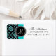 Cute design with black vintage damask pattern with PRINTED teal or aqua blue glitter effect and monogram initial. Use this fun Return Address Labels with your monogram initial, name and address details for your Wedding Invitations, wedding thank you cards or bridal shower invitations and more. For other glitter colours contact store owner. Copyright Elke Clarke.