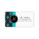Cute design with black vintage damask pattern with PRINTED teal or aqua blue glitter effect and monogram initial. Use this fun Address Labels with your monogram initial, name and address details for your Wedding Invitations, wedding thank you cards or bridal shower invitations and more. For other glitter colours contact store owner. Copyright Elke Clarke.