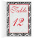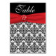 Black Damask with Poppy Red Table Number Card