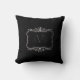Black Damask with silver frame monogram Cushion