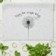 Inspirational quote with black dandelions and seeds on a grey terrazzo pattern.