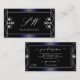 Black Dark Blue Ornate Sparkling Diamonds Initials Business Card