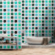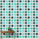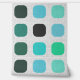 This design features a modern textured geometric motif with black, dark green, sky blue, and aqua turquoise red rounded squares on a white grey coloured backdrop. The pattern is both ornate and elegant, exuding a funky hipster essence. It's a sophisticated and chic design that represents eclectic minimalism, ideal for artistic interior designers, home decor lovers, trendsetters, and aficionados of vintage, retro, or abstract digital geometric patterns. This ornate yet trendy hipster pattern is versatile and offered on a range of contemporary home decor products, suitable for enhancing the atmosphere of various spaces like master bedrooms, kitchens, living rooms, man caves, college dormitories, condominiums, studios, or apartments.