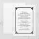 Simple and minimalist Deco Chic Wedding Information Card with a modern black art deco ornamental border. This classic and elegant info card is easy to customise with your wedding details. Find more personalisation options by clicking Customise.
