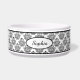 Lovely black vintage damask pattern background on white with a personalizable text area for the name of the pet. The font is a lovely script font in black colour.