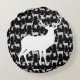 This pretty deer design round pillow is perfect for anyone who loves deer, animals, wildlife,and fun designs! Features several small rustic white deer silhouettes on a background of black with a big white silhouette doe on front, buck on back. This deer pillow is perfect for the living room, den, family room, family cabin on the lake, and of course it makes a great gift.